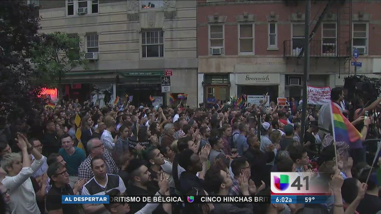 Miles de personas se reunieron afuera del club Stonewall Inn en Manhattan para unirse contra los actos de odio como el sucedido en Orlando. Al evento también asistieron autoridades políticas locales.