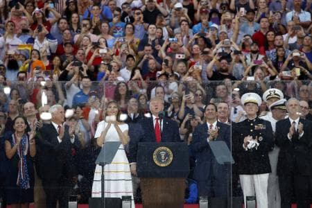El presidente Donald Trump dio este Día de la Independencia un discurso nacionalista de exaltación a las Fuerzas Armadas estadounidenses y como se esperaba, lo acompañó con el sobrevuelo de aviones, helicópteros y tanques.