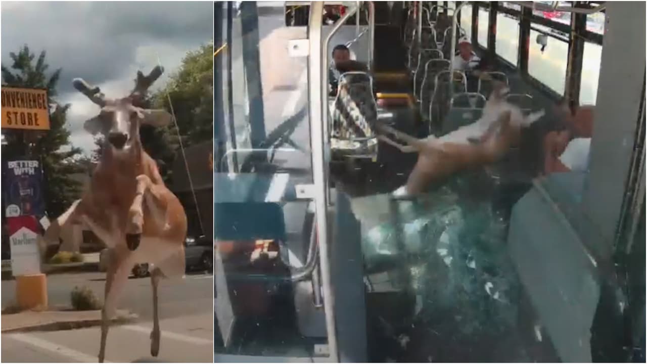 Un ciervo impactó fuertemente contra el parabrisas de un autobús público el lunes 10 de junio en Warwick. Tres pasajeros sufrieron leves lesiones y el animal falleció tiempo después tras los golpes.