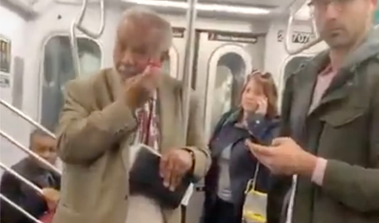 Anciano es brutalmente golpeado con un zapato mientras predica con su biblia en el subway