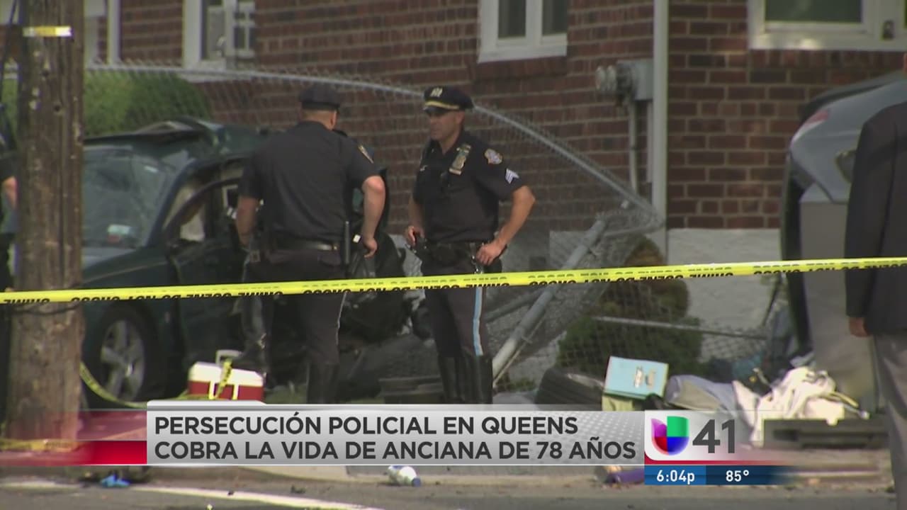 Una mujer de 78 años perdió la vida al verse involucrada en un choque con un auto que la policía estaba persiguiendo en Cambria Heights.