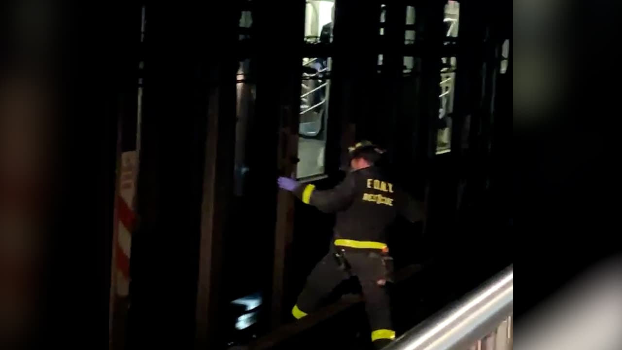 Un video de Citizen App muestra a los bomberos en la escena, mientras esa plataforma del metro fue cerrada al público debido al incidente.