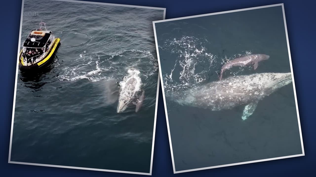 Ballena gris pesca la atención de turistas en California, llevándolos del horror a la máxima ternura