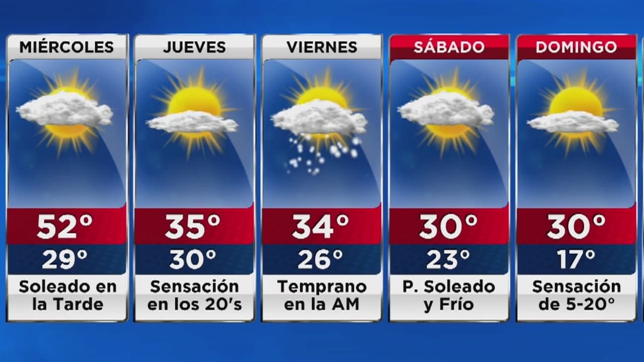 Después de mediodía la temperatura podría alcanzar los 50 grados Fahrenheit. En horas de la noche descenderá a unos 20 grados.
