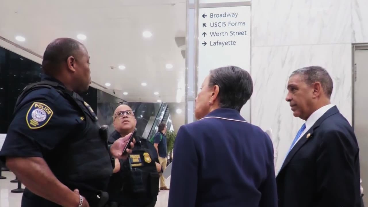 Este lunes, los congresistas Adriano Espaillat y Nydia Velázquez intentaron por segunda vez entrar al piso 10 del edificio ubicado en la 26 de Federal Plaza, Nueva York, con el objetivo de supervisar las acciones de ICE. Este lugar es señalado de retener a los inmigrantes después de ser arrestados tras su cita en la corte. Aquí su testimonio.