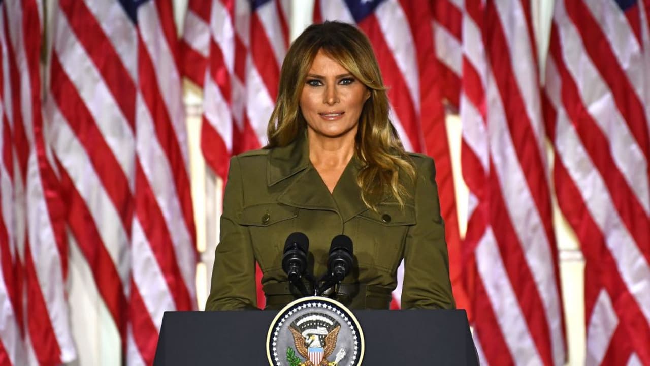 La primera dama, Melania Trump, fue la oradora más destacada de la noche. Dio el discurso de cierre del evento desde el recientemente renovado Jardín de las Rosas de la Casa Blanca.