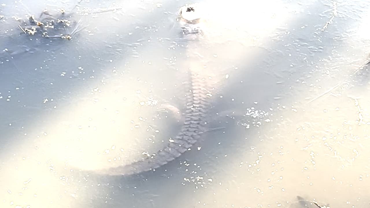 La increíble técnica de este caimán para sobrevivir en un lago congelado