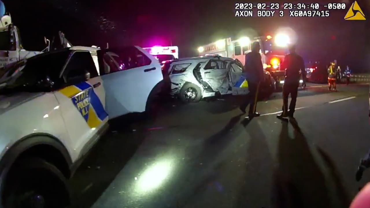 Video Tráiler choca contra dos patrullas en carretera de Nueva Jersey