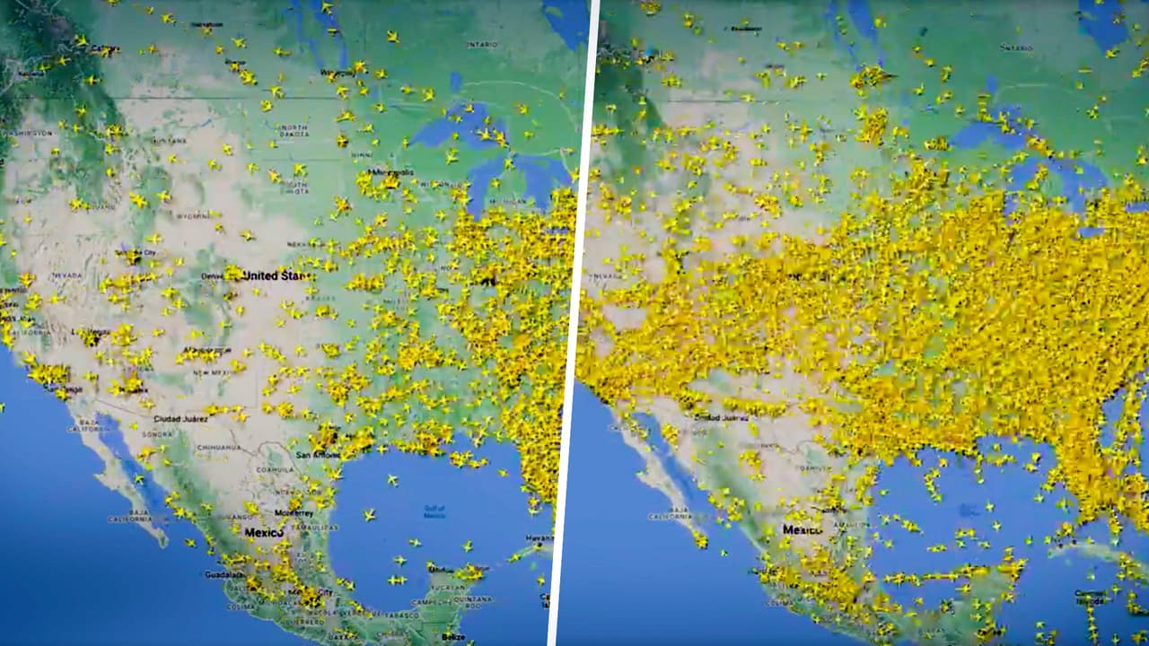 Una animación de FlightRadar24 muestra el tráfico en el espacio aéreo de Estados Unidos. Se espera que 2.2 millones de pasajeros usen los aeropuertos de Nueva York y Nueva Jersey.