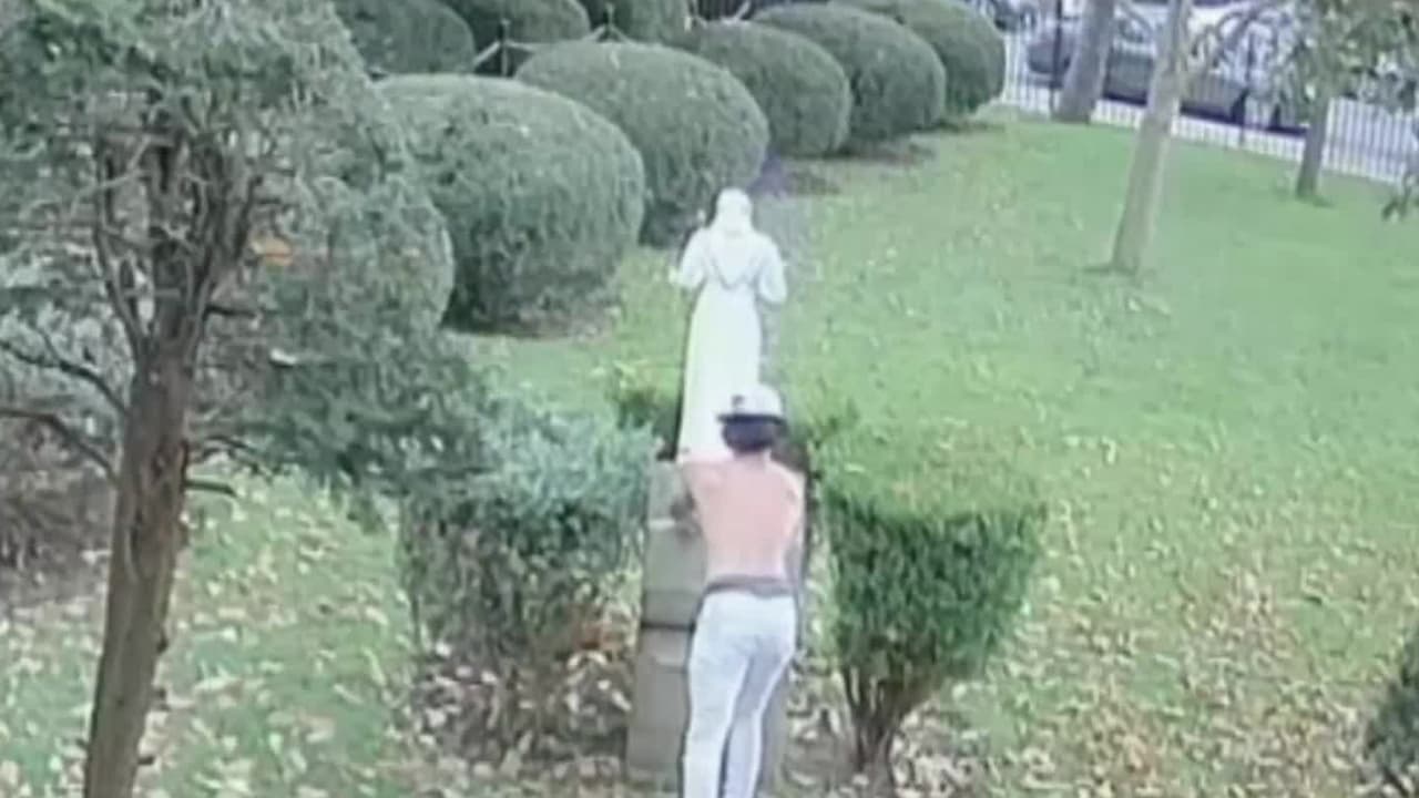 'Nueva York en un Minuto': un hombre semidesnudo atacó una imagen religiosa en Cypress Hills