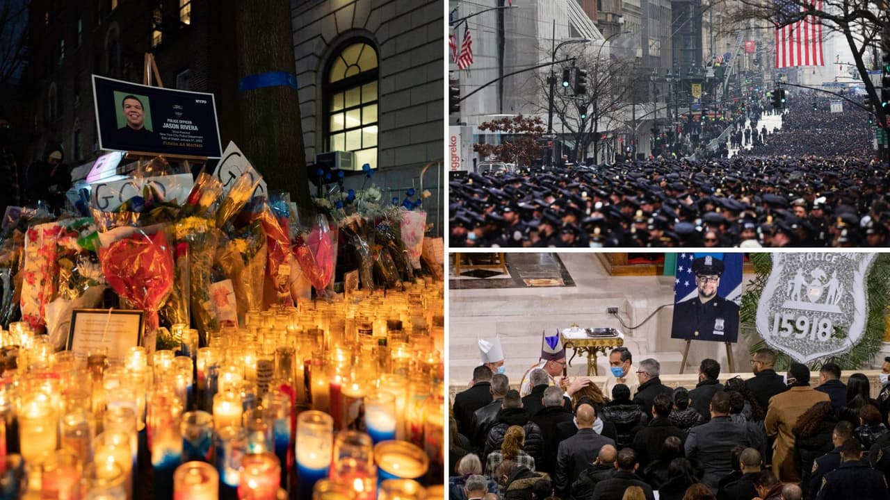 Decenas de personas se reunieron este miércoles en el vecindario de Kew Gardens para rendir tributo a los oficiales Jason Rivera y Wilbert Mora, quienes murieron baleados después de responder a una llamada de emergencia por un caso de violencia doméstica en Harlem. El funeral de Mora se realizó en la Catedral de San Patricio y su cuerpo fue trasladado hasta un cementerio de Queens para su sepultura.