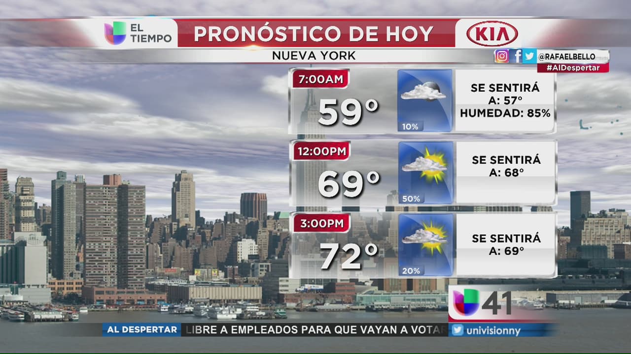 La ciudad tendrá un jueves parcialmente nublado sin embargo las temperaturas se encontrarán entre los 59 y los 72 grados.
