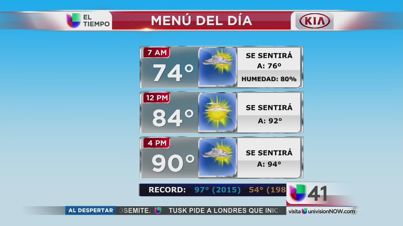 La ciudad inicia este jueves con una temperatura de 74 grados a las 7:00 a.m. que se elevará hasta 90 grados, con sensación térmica de 94 grados, a las 4:00 p.m.