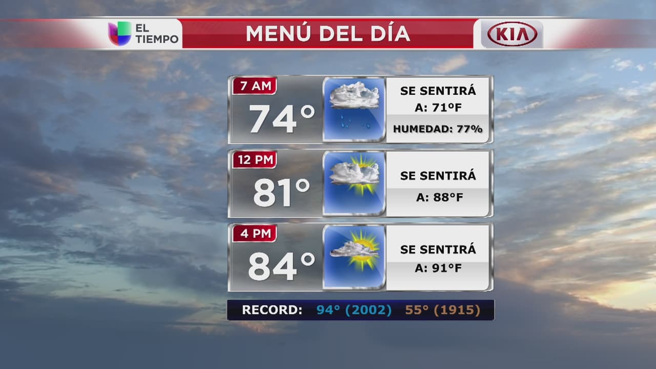 Este jueves la ciudad amanece con 74 grados y la temperatura se elevará a 84 grados en torno a las 4:00 p.m. con sensación térmica de 91 grados.
