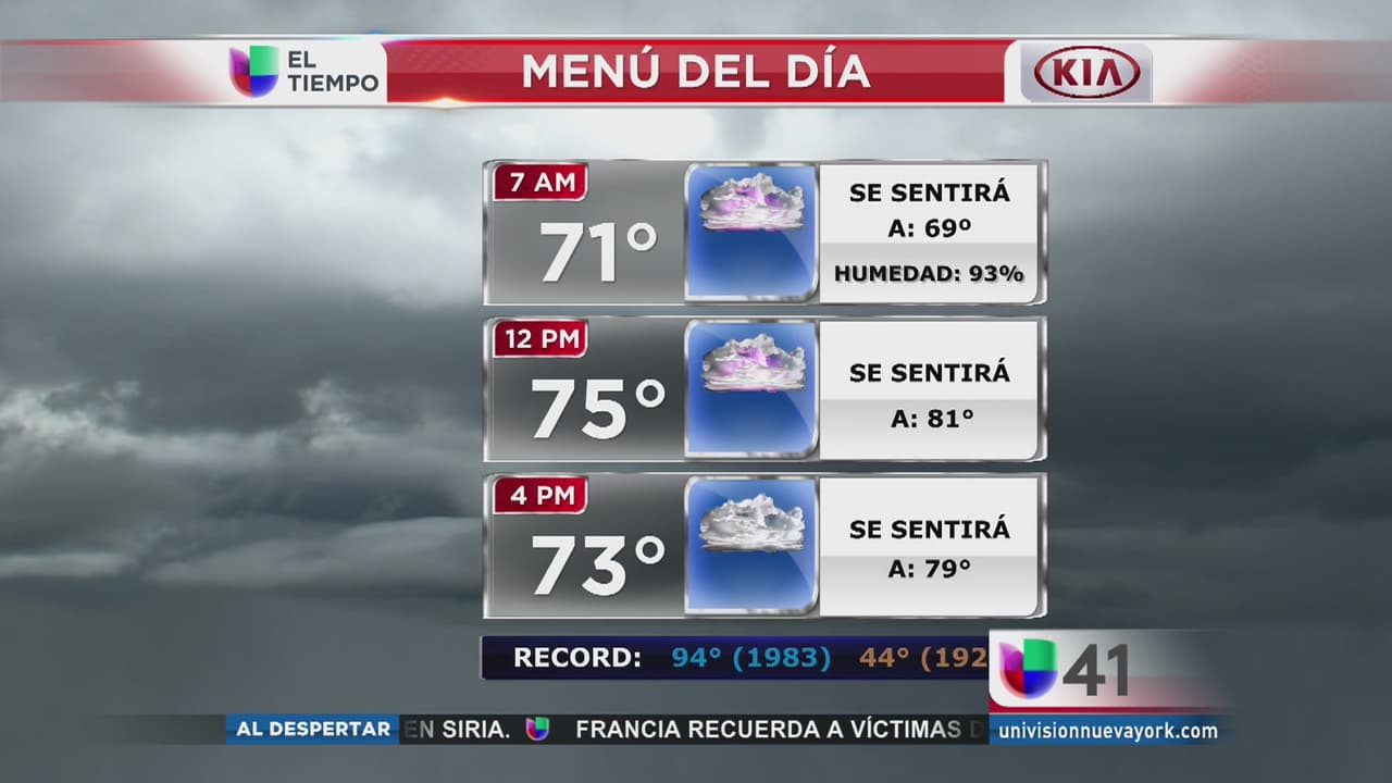 La ciudad tendrá un lunes lluvioso con la posibilidad de tormentas eléctricas con una temperatura máxima de 76 grados.