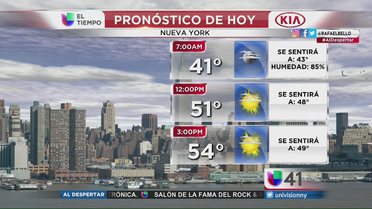 La ciudad tendrá una temperatura de 41 grados a las 7:00 a.m. que se elevará a 51 grados al mediodía y alcanzará su máximo de 54 grados a las 3:00 p.m.