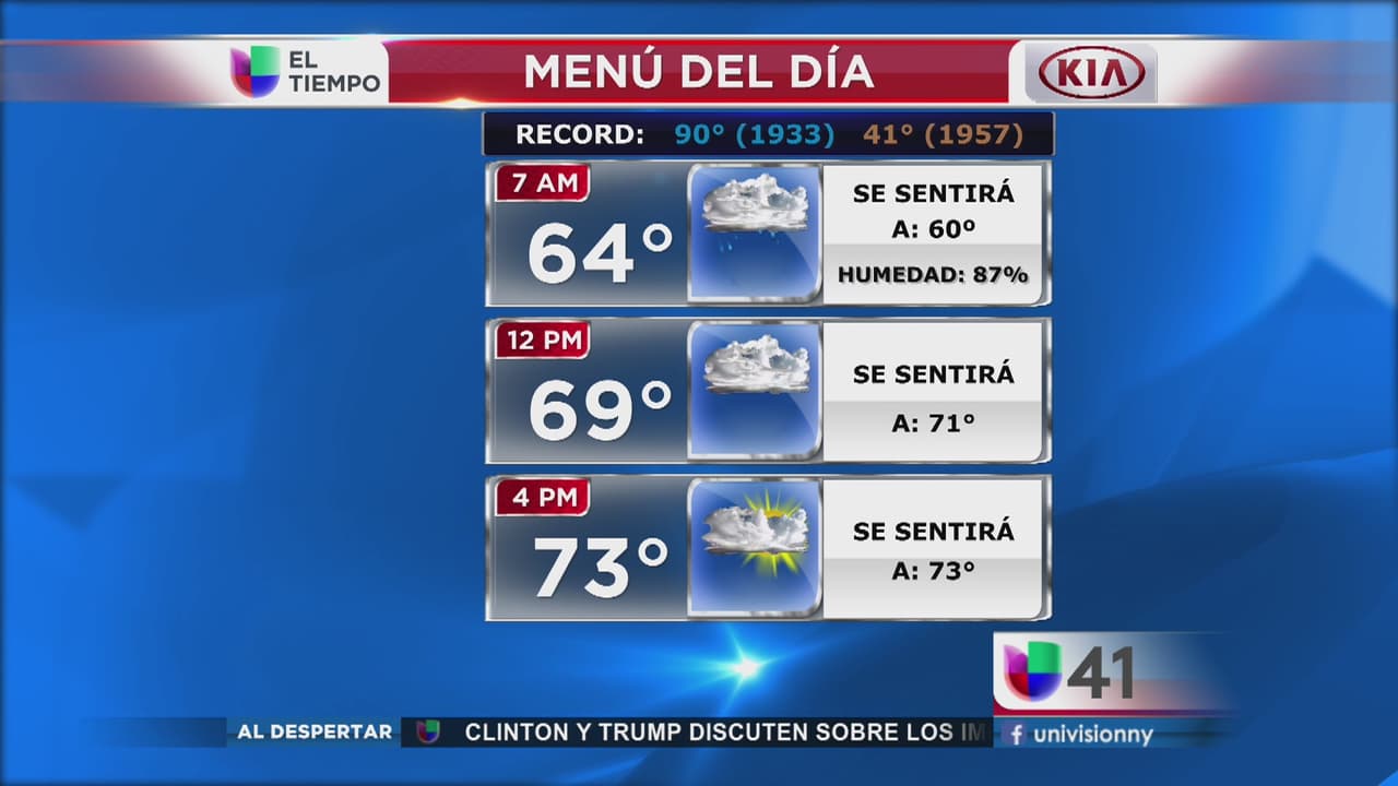 El día inicia lluvioso con una temperatura de 64 grados, que se elevan a 69 y luego a 73 con el paso de las horas.