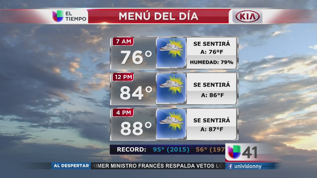 La ciudad amanece este miércoles a 76 grados y alcanzará su máxima temperatura en torno a las 4:00 p.m. cuando esté a 88 grados.