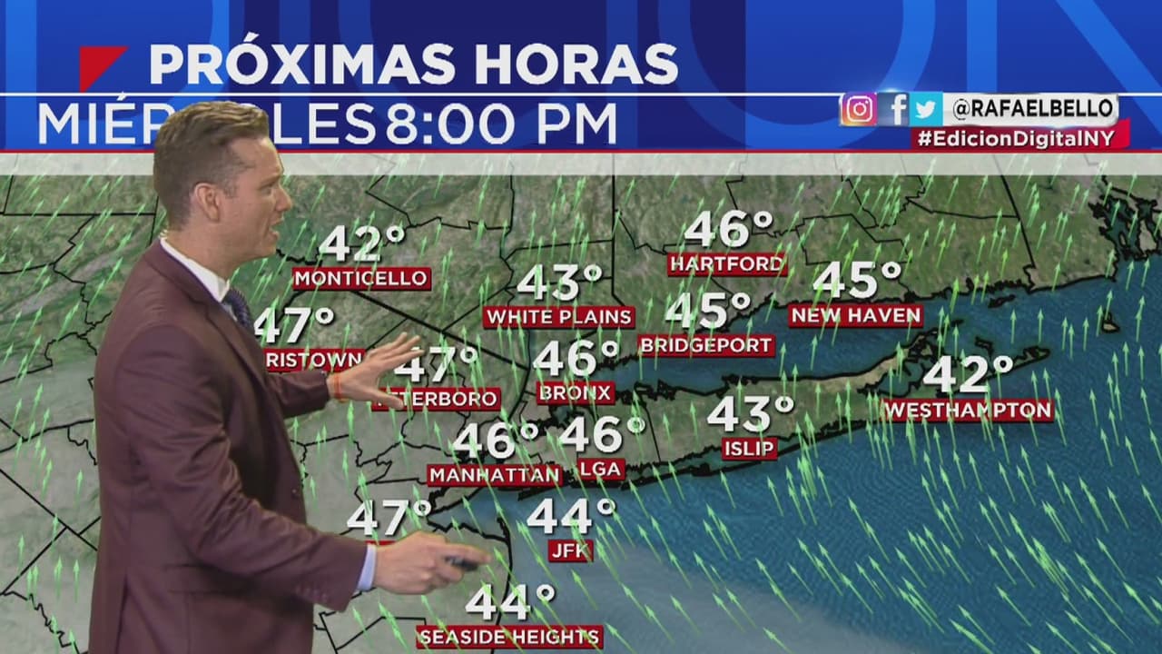 Las últimas horas del día estarán alrededor de los 45 grados Fahrenheit y con presencia mínima de nubes, por lo que no se esperan precipitaciones. Sin embargo, en la madrugada del jueves y durante el resto del día se presentarán aguaceros y tormentas eléctricas, además de una alerta por mal tiempo.