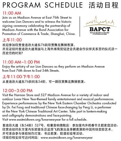 Nueva York, NY – El próximo fin de semana se celebrará el Nuevo Año Lunar en la Avenida Madison, por primera vez en la historia China-Americana de Nueva York.
