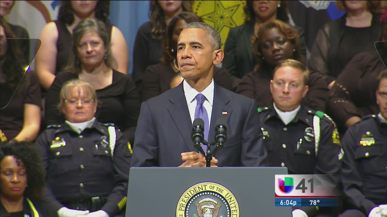 El presidente Barack Obama se dirigió a la comunidad de Dallas para llamar a la unidad, esto en el marco del tiroteo que le quitó la vida a cinco oficiales.
