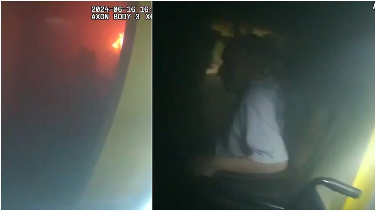 En Evesham, NJ, un oficial de policía rescató a un hombre en condición de discapacidad de una casa en llamas en Sagemore Drive el 16 de junio. A pesar del denso humo, el oficial localiza al hombre y lo rescata a salvo.