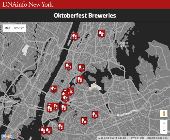 DNAinfo ha creado un mapa para que puedas situar los locales que se unen al popular festival de cerveza en Nueva York y sus alrededores.