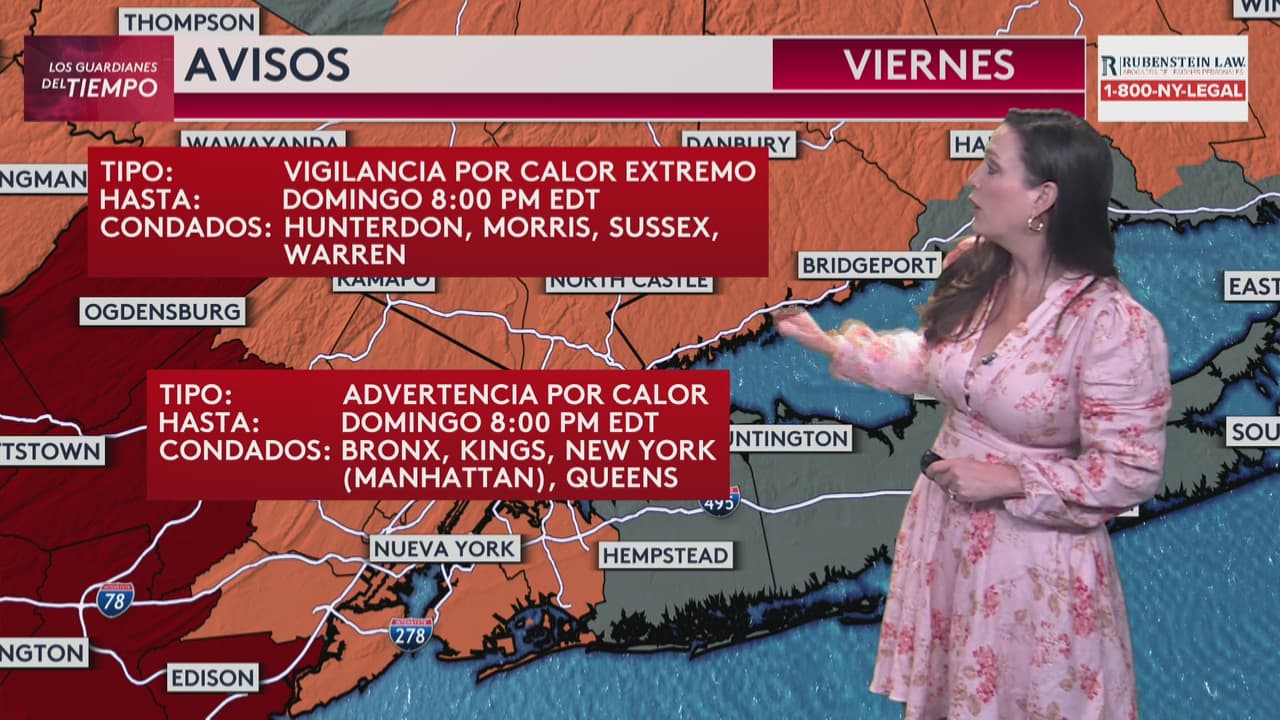 “ Áreas como Elizabeth y Newark en Nueva Jersey donde las temperaturas van a estar entre 96 y 98 las sensación podría estar cerca de los 100 grados”.