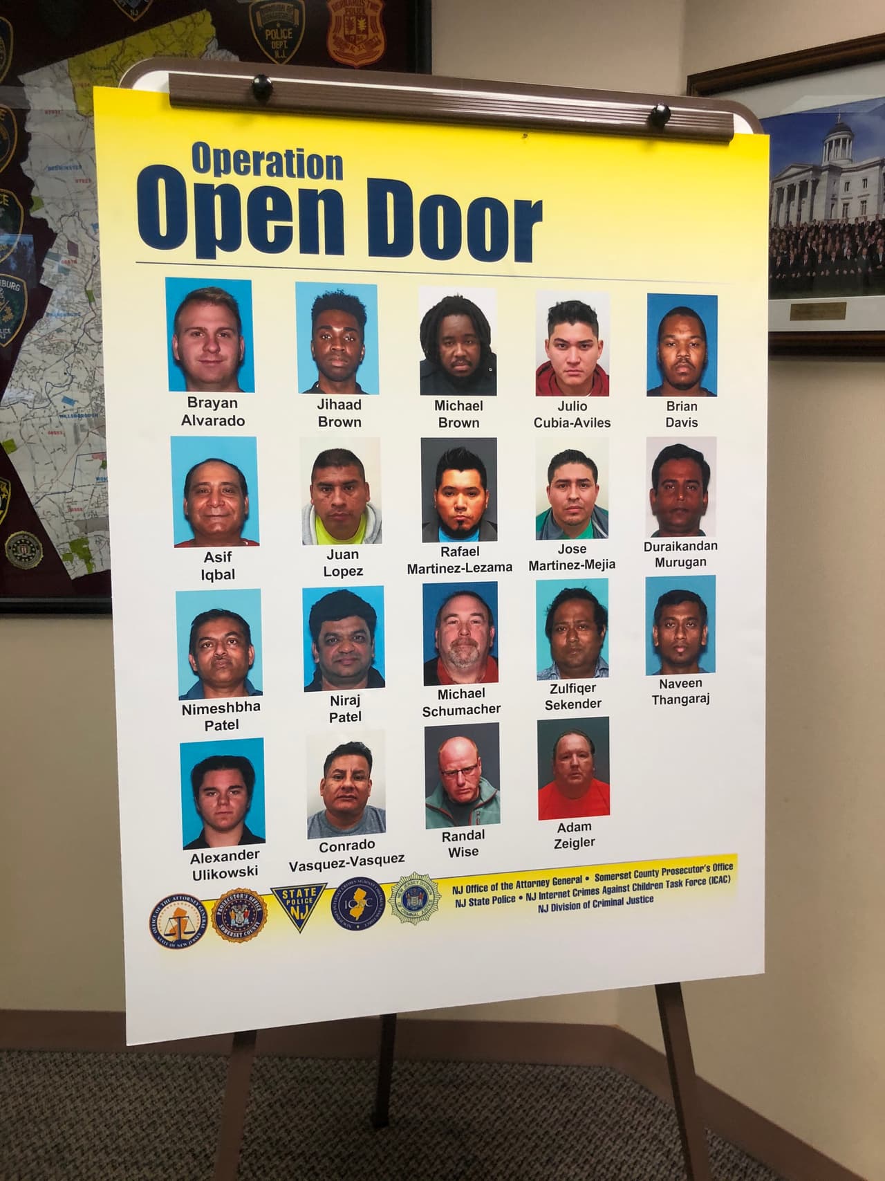 El Fiscal General del Estado de Nueva Jersey, Gurbir Grewal, y el Fiscal del Condado de Somerset, Michael Robertson, revelaron este jueves detalles sobre la llamada Operación Puerta Abierta, una redada de agresores sexuales de niños bajo la que se arrestaron a 19 hombres.