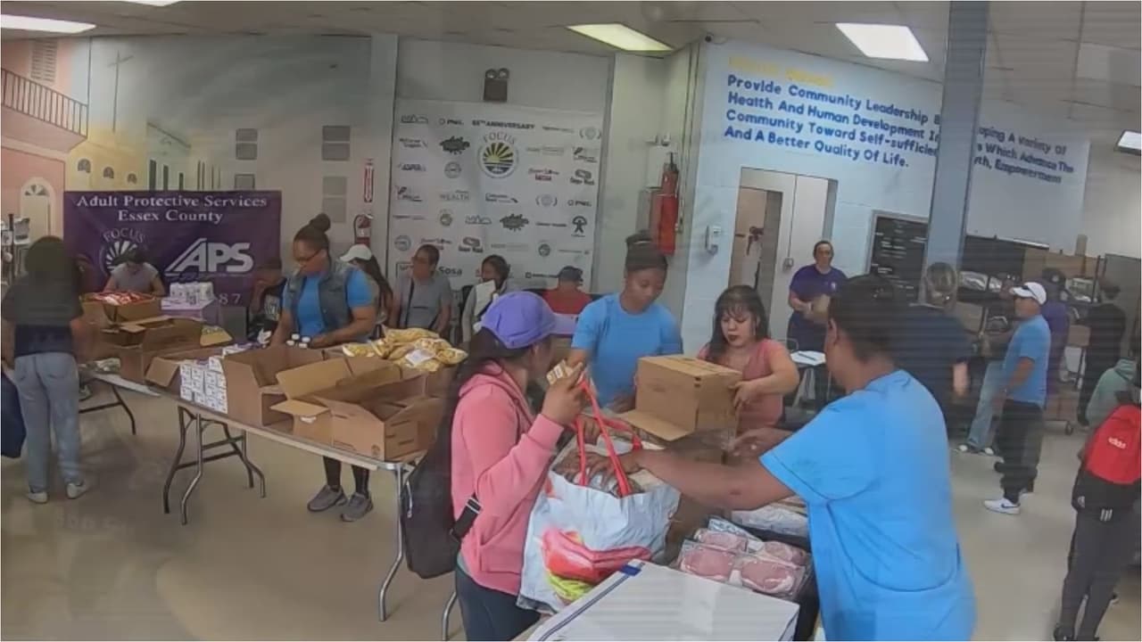 Decenas de personas llegan hasta la organización ‘Focus’, en Newark, Nueva Jersey, cada miércoles de entrega de alimentos, para hacerse a un mercado. Según información de Feeding America, en el Estado Jardín, casi un millón de personas pasan hambre y, de ellas, más de 263,000 son niños. Ana Chavarría, miembro de ‘Focus’, explica cuáles son los requisitos para acceder a la comida que entregan.
