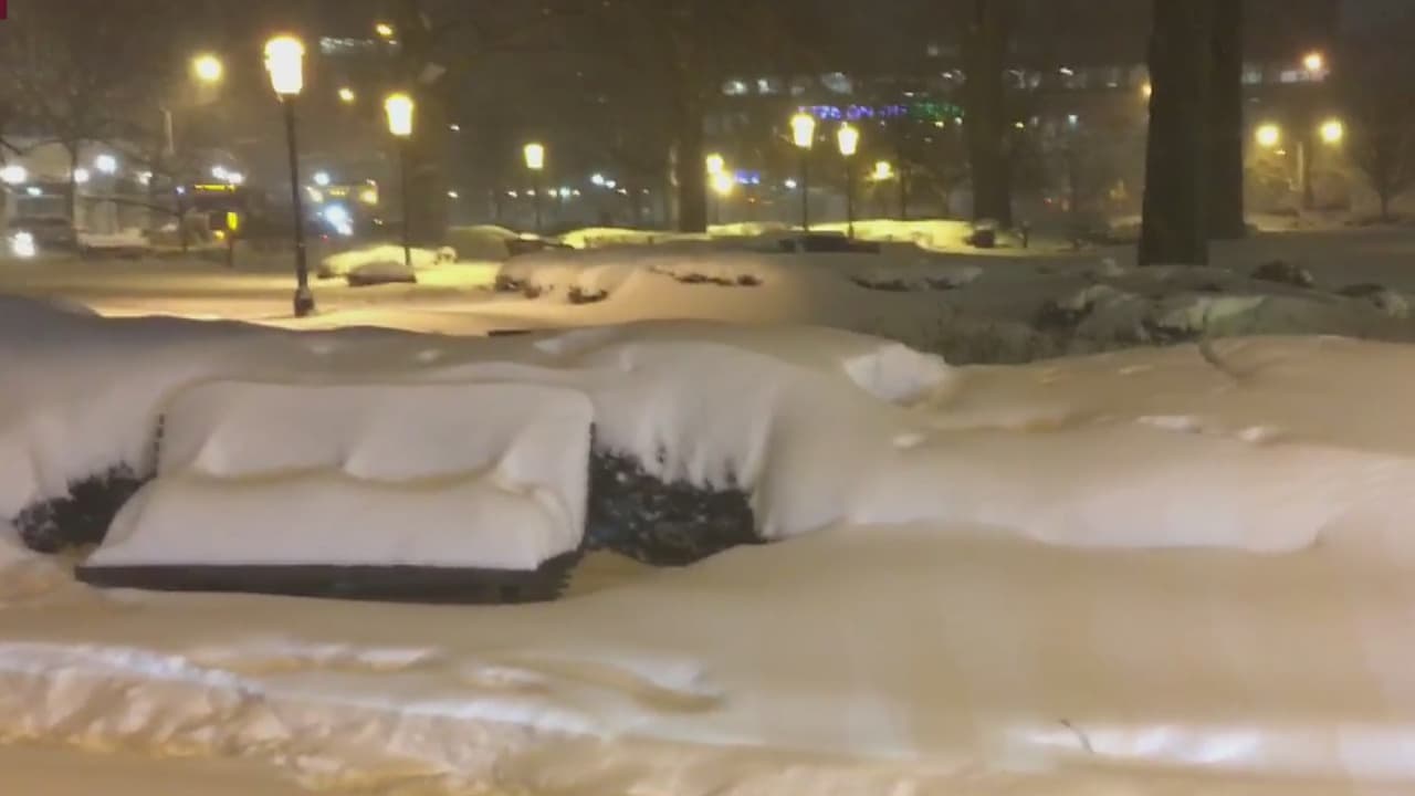 Parques cubiertos de nieve y pocas personas, el panorama en Morristown por la tormenta invernal