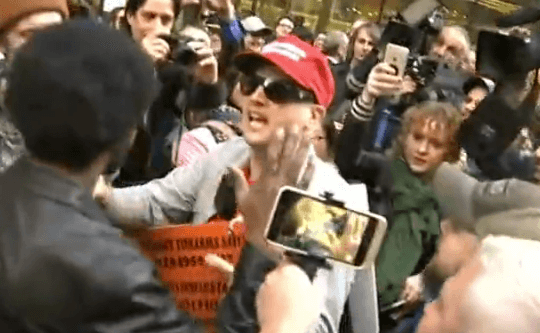Un seguidor del político republicano quiso hacer campaña en medio de quienes protestan. Esperanza Ceballos nos ofrece el siguiente reporte.