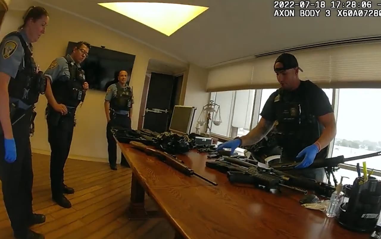 Policía de Seacaucus, en Nueva Jersey, revela video de una cámara corporal que muestra el momento en el que los oficiales encontraron un arsenal de 39 armas en el interior de un hospital.