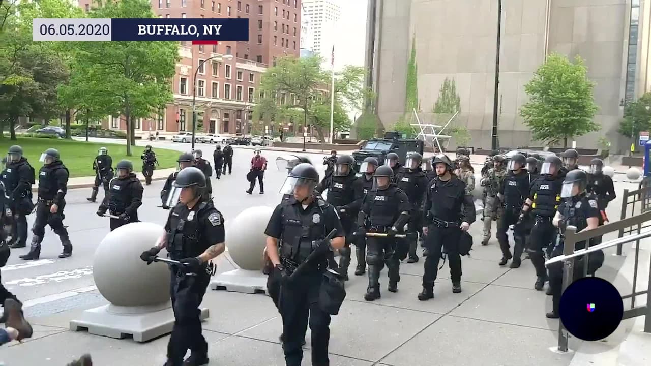 El incidente ocurrió durante una protesta en Niagara Square, donde los manifestantes, como en el resto del estado y el país, pedían justicia racial tras la muerte de George Floyd en manos de un policía en Minneapolis, mientras otros tres oficiales veían la escena sin hacer nada al respecto.