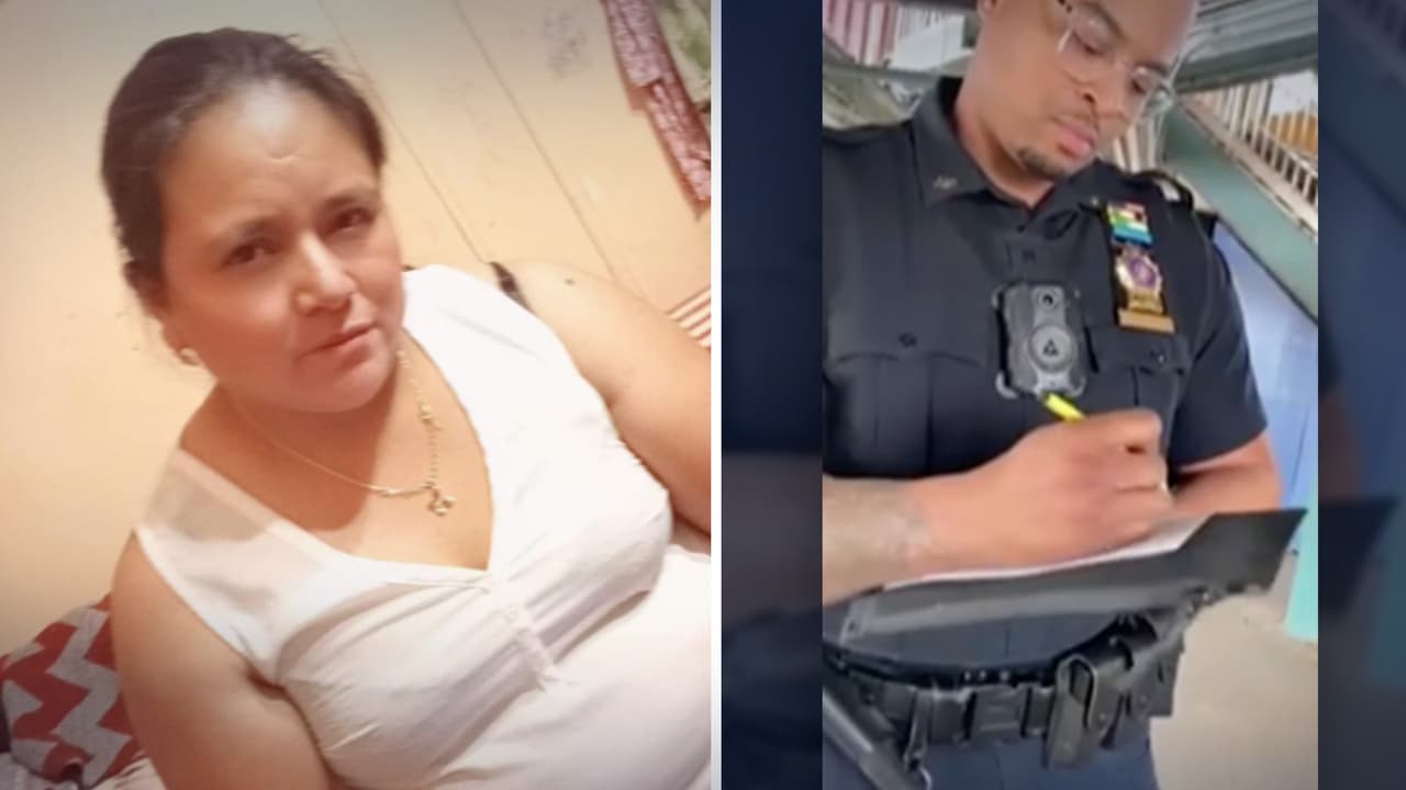 María Falcón grabó el momento en que sintió la 'burla' de un oficial de la policía de NYC, mientras otro agente la multaba. La ecuatoriana dijo que la reacción del policía al escucharla responder en inglés fue "humillante".