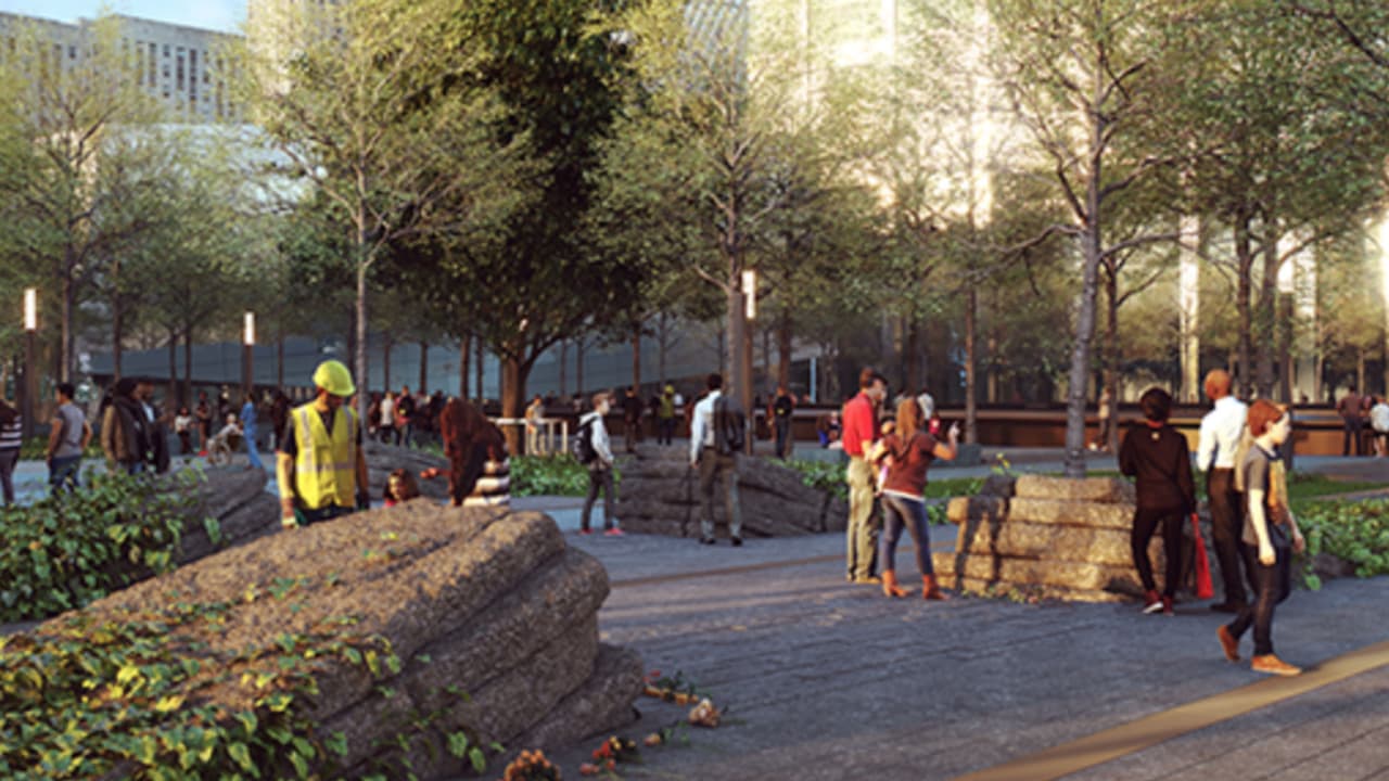 El personal de rescate y recuperación que trabajó tras el ataque del 11 de septiembre de 2001 ahora tiene un espacio de homenaje. Un camino entre rocas significa la tenacidad con la que enfrentaron la situación.