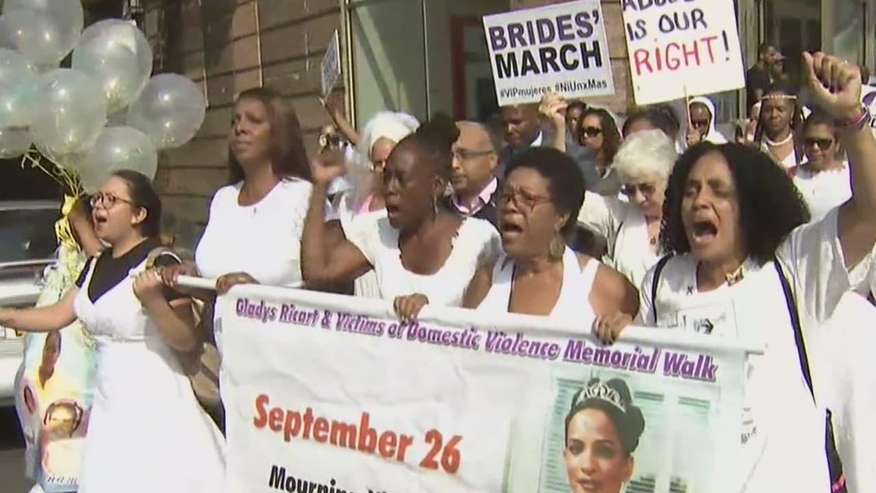 "Queremos que sepan que hay ayuda": vestidas de novia, mujeres protestan contra la violencia doméstica