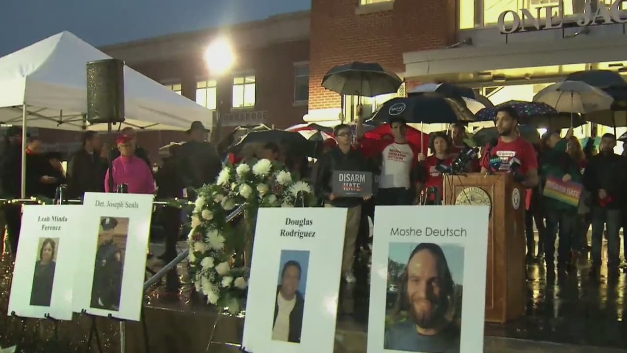 Bajo la lluvia, decenas de personas se congregaron este viernes para conmemorar a los tres civiles y al oficial que fallecieron durante los hechos ocurridos el pasado martes. El alcalde Steven Fulop recorrió las aulas de una escuela de la ciudad donde el superintendente le aseguró que el día de la tragedia varios niños lloraron de pánico.