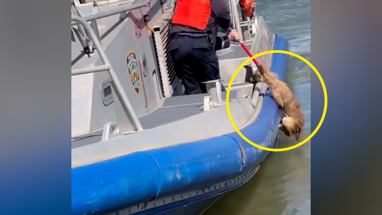 Oficiales de la Unidad Portuaria de la Policía de Nueva York (NYPD) rescataron al coyote la noche del lunes, en el East River de Manhattan.