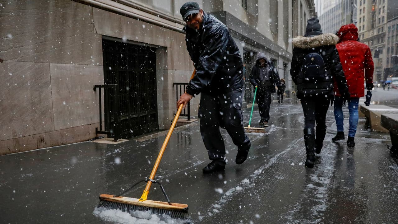 Residentes de El Bronx trabajan en la limpieza de la nieve tras el paso de la tormenta