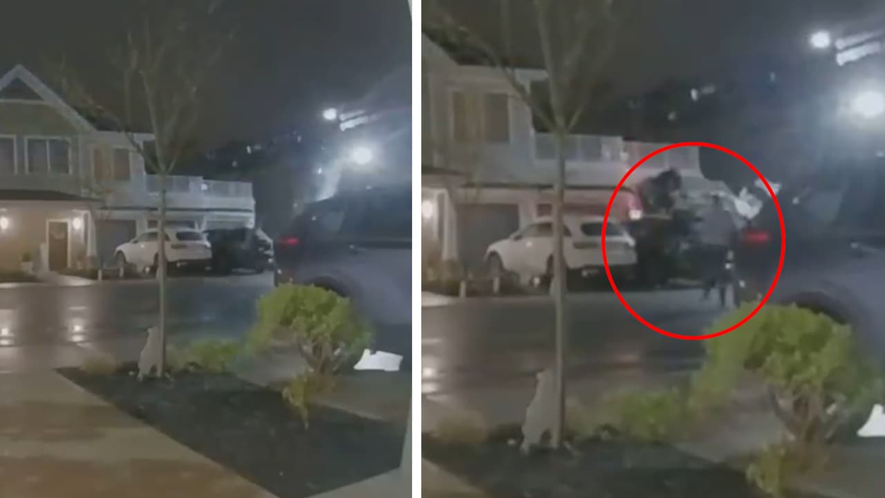 Minutos después de la celebración de Año Nuevo, el 1 de enero, sospechosos de robar un auto huyen de la policía y caen desde una vía elevada North Caldwell, Nueva Jersey, sobre una vivienda y otro vehículo estacionado.