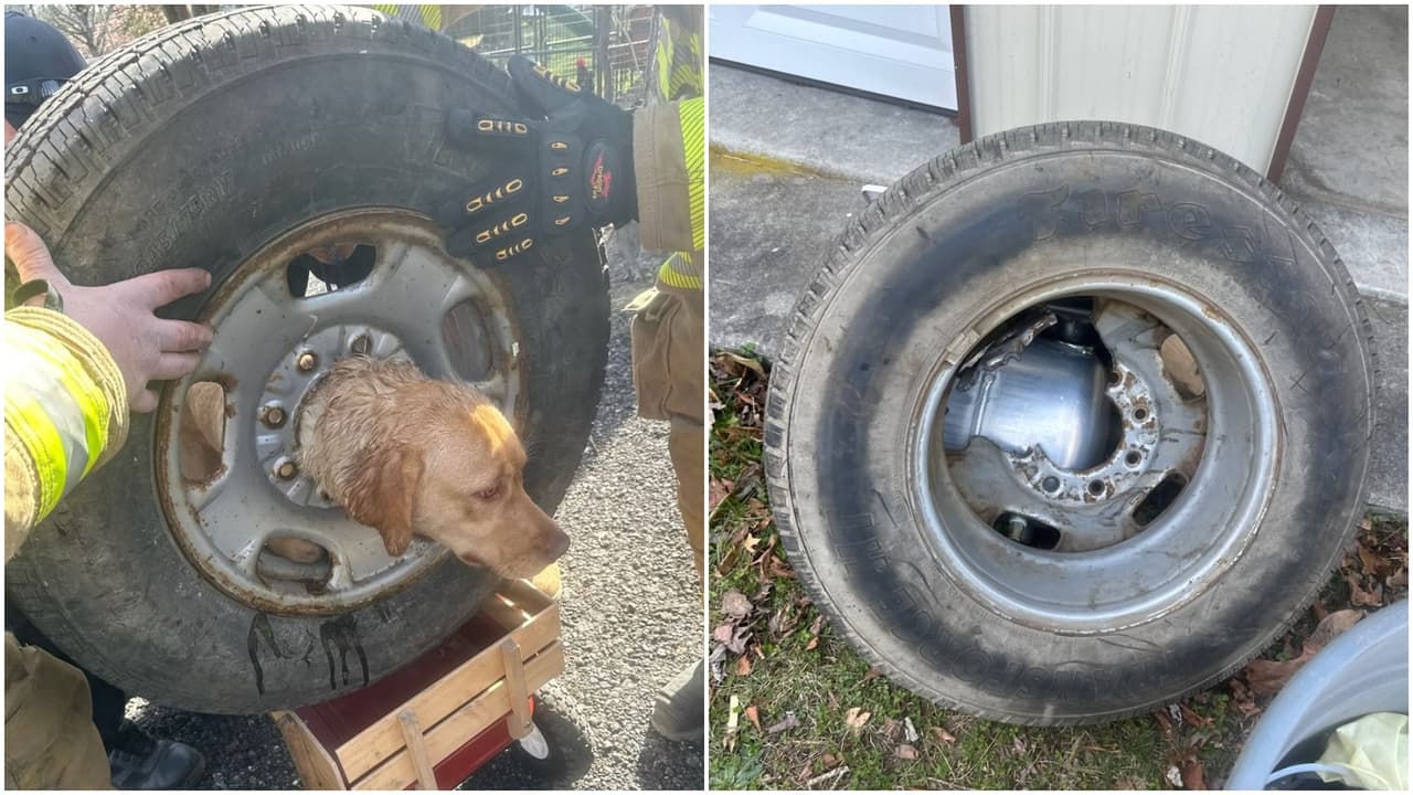 Salvan a perrita de Nueva Jersey tras atorarse en una llanta