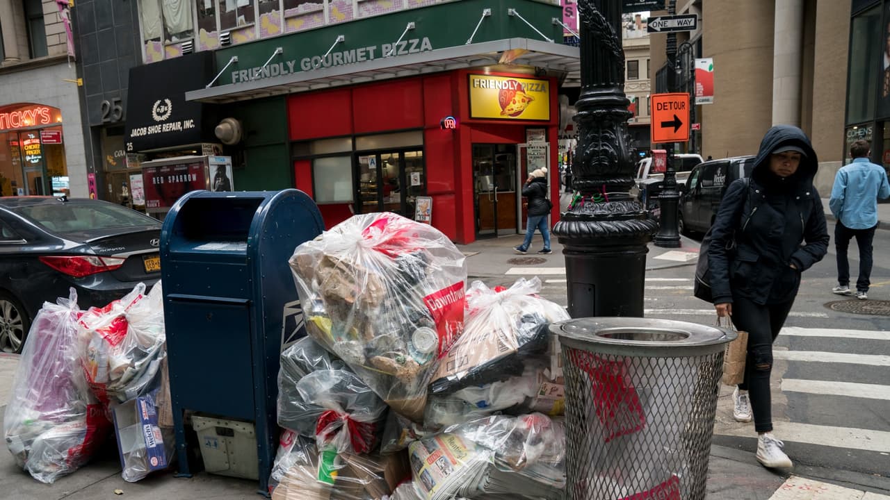 En un recorrido por la tercera avenida en Brooklyn pueden verse pilas de basura que están ubicadas justo al lado de restaurantes y donde se sientan los comensales.