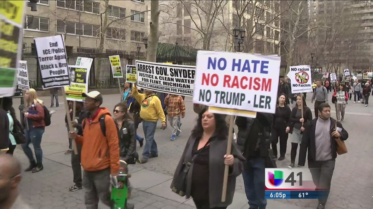 Decenas de activistas acudieron a los alrededores de la torre de Trump para manifestar su desacuerdo contra el candidato republicano.
