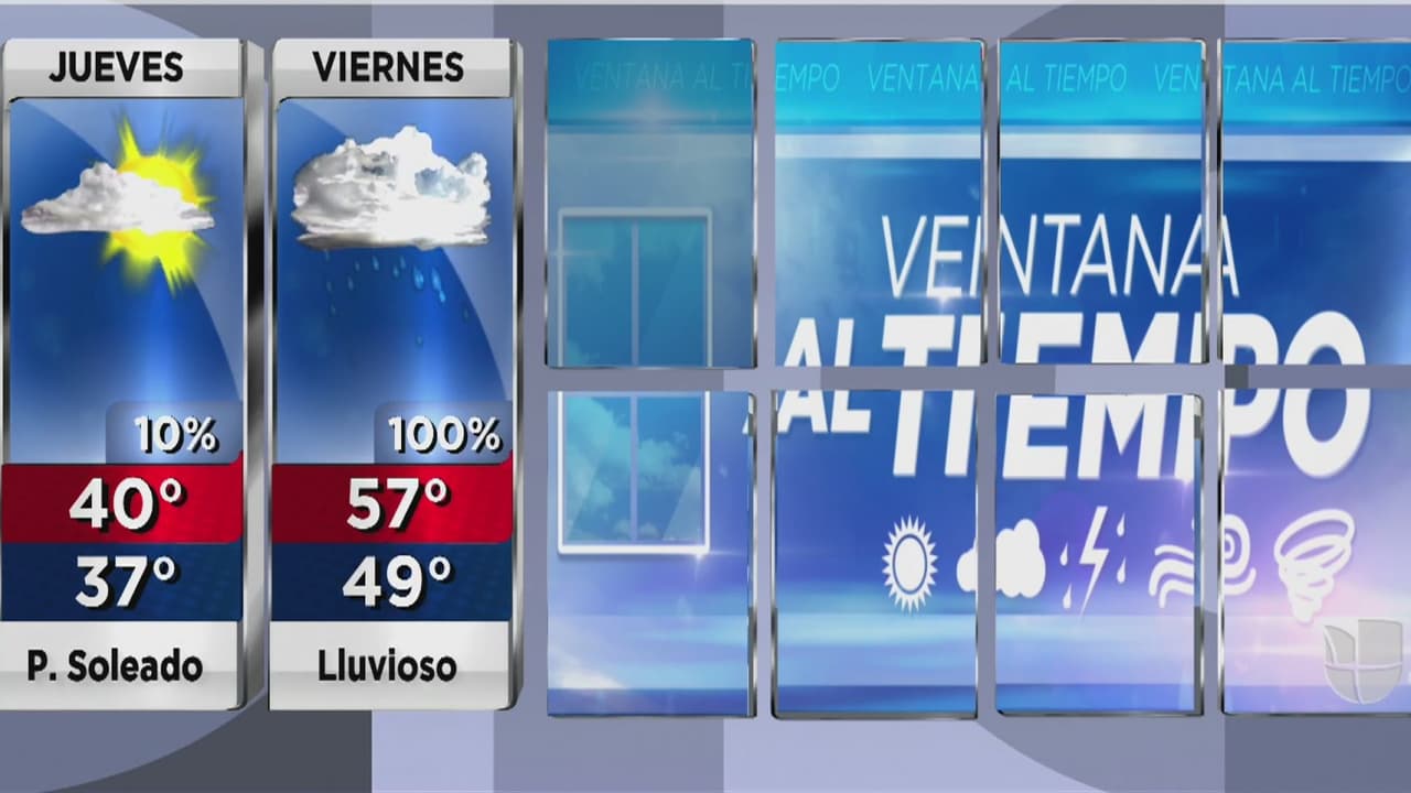 Este miércoles las temperaturas estarán entre los 41 y 37 grados Fahrenheit. El jueves se registrará algo de sol. El viernes se registrarán tormentas.