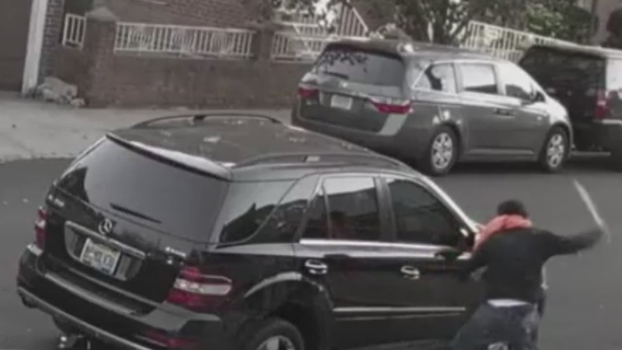 Se registró en video momento en el que hombre daña vehículo en la Calle Ocean Court, Brooklyn