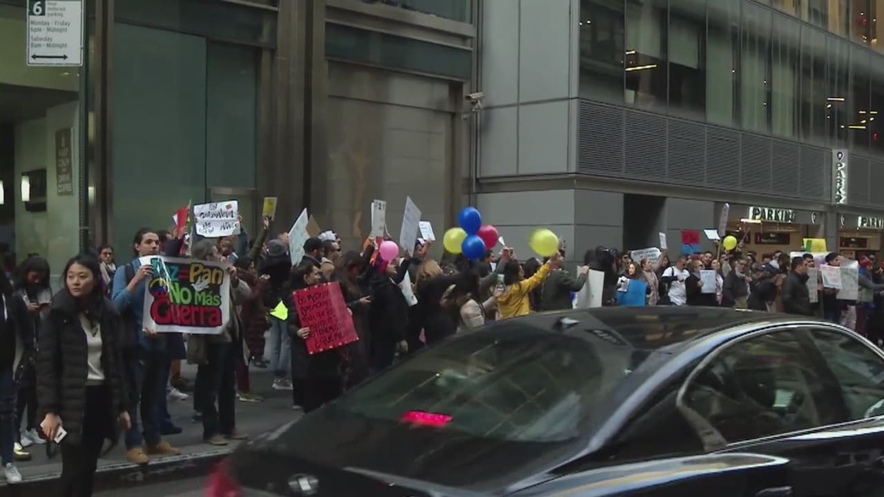 Decenas de personas en Nueva York se unen al paro nacional que se lleva a cabo en Colombia
