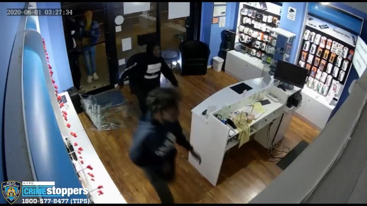 La Policía de Nueva York busca a un grupo de hombres que entraron a robar a una tienda de celulares llamada “I-Fix Screens” cerca del Washington Square Park y después arrollaron a un oficial de la Policía.