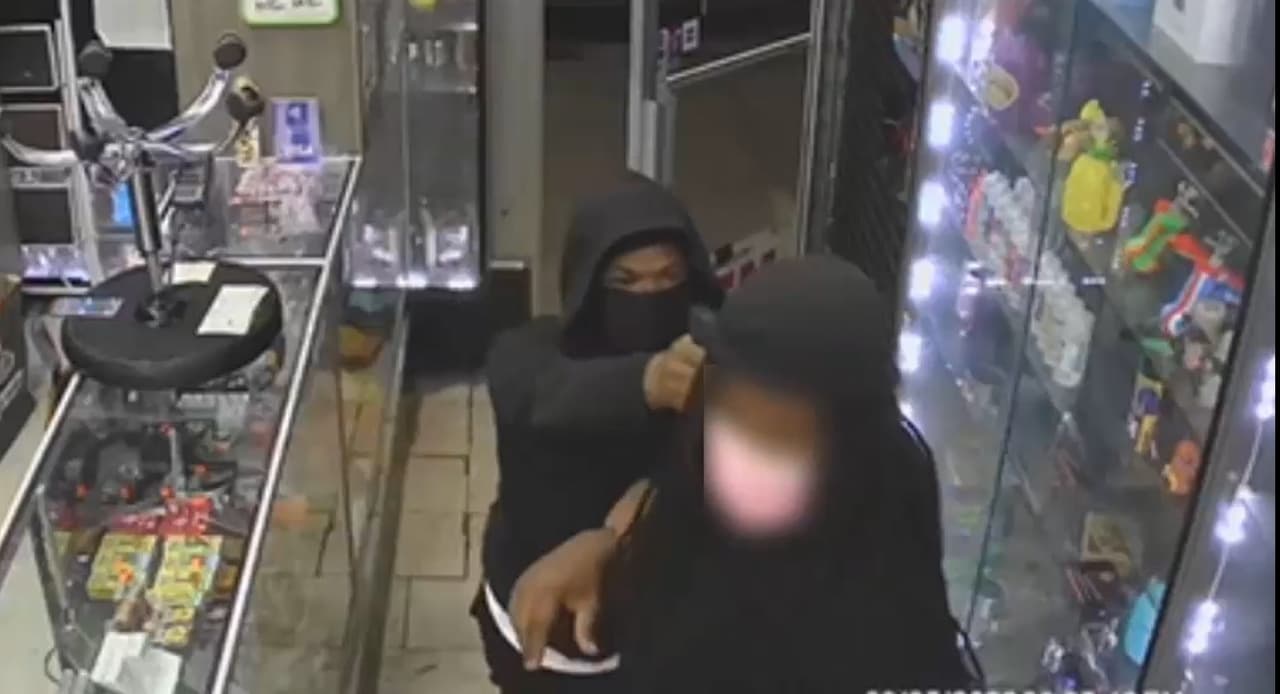 Según la policía, un tercer miembro entró en la tienda y robaron 1,000 dólares en mercancía, $4,000 en efectivo y un iPhone 11 de un trabajador antes de alejarse en un sedán negro.