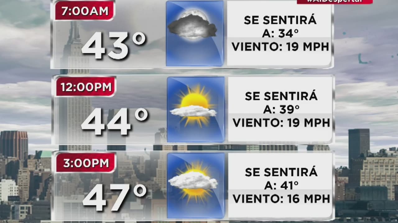 La máxima temperatura se registrará aproximadamente a las 3:00 de la tarde, y llegará a los 47 grados. Se espera un día en el que el frío les dará un descanso a los neoyorkinos. En horas de la mañana se tendrán 43 grados, con presencia del sol.
